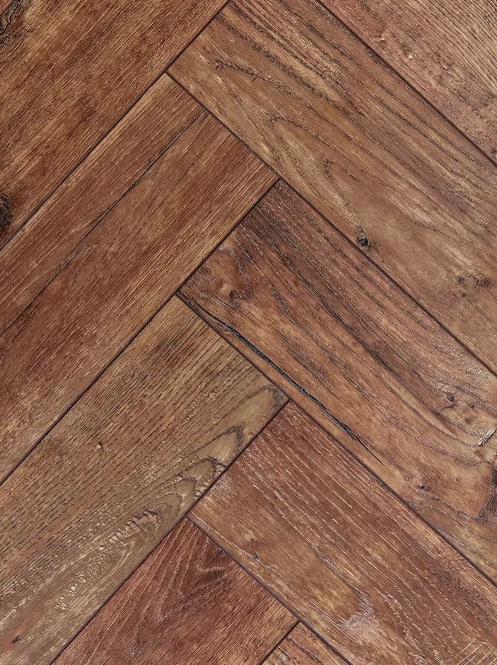 1. Французская ёлка, также известная как «Chevron», представляет собой укладку, при которой доски срезаются под углом, обычно 45 или 60 градусов, и укладываются встык, образуя непрерывный V-образный узор. Это создаёт эффект динамичности и добавляет пространству глубины. Доски имеют трапециевидную форму с косыми срезами. Благодаря этому при укладке образуется узор, напоминающий еловые ветки.