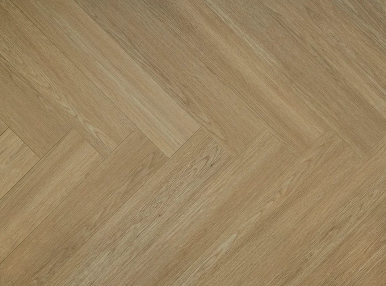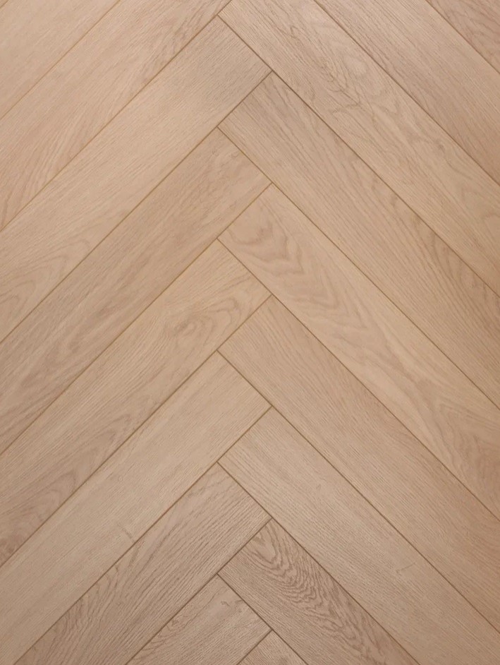 1. Французская ёлка, также известная как «Chevron», представляет собой укладку, при которой доски срезаются под углом, обычно 45 или 60 градусов, и укладываются встык, образуя непрерывный V-образный узор. Это создаёт эффект динамичности и добавляет пространству глубины. Доски имеют трапециевидную форму с косыми срезами. Благодаря этому при укладке образуется узор, напоминающий еловые ветки.